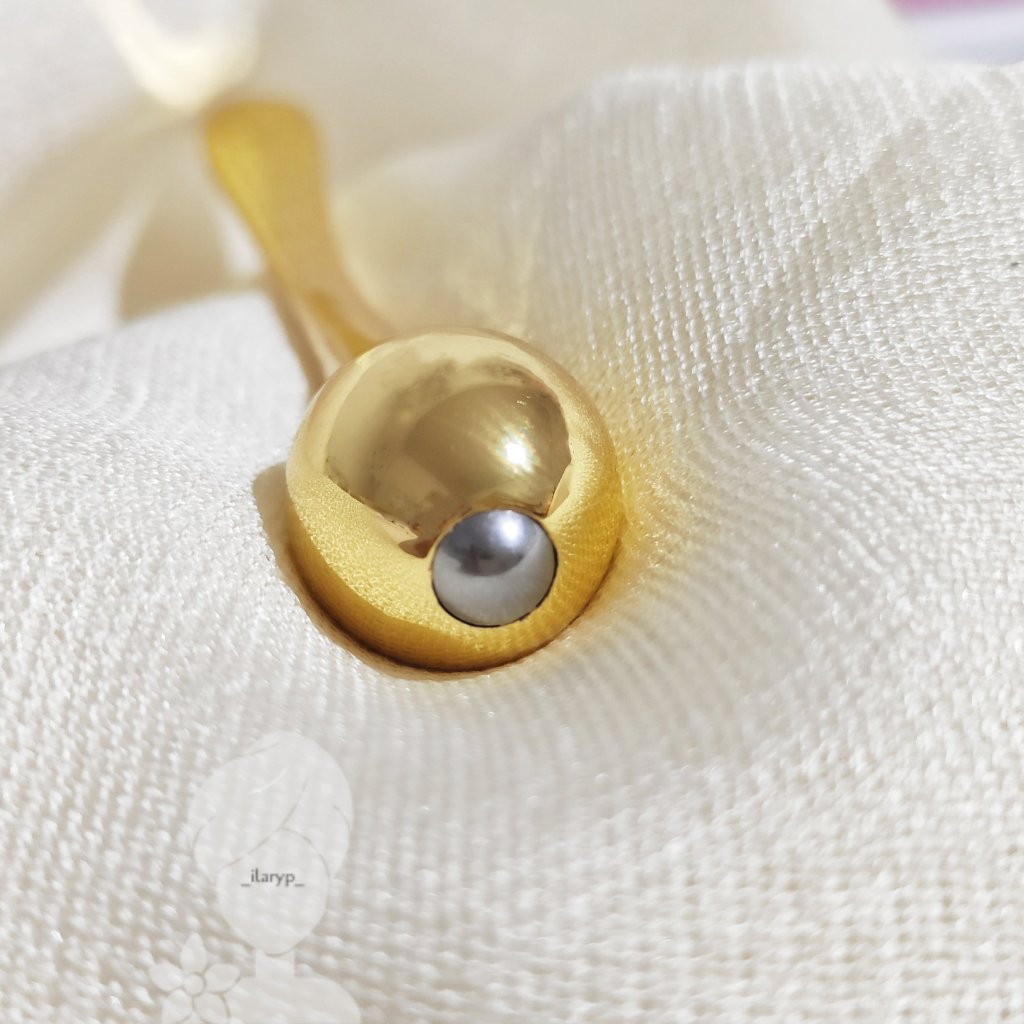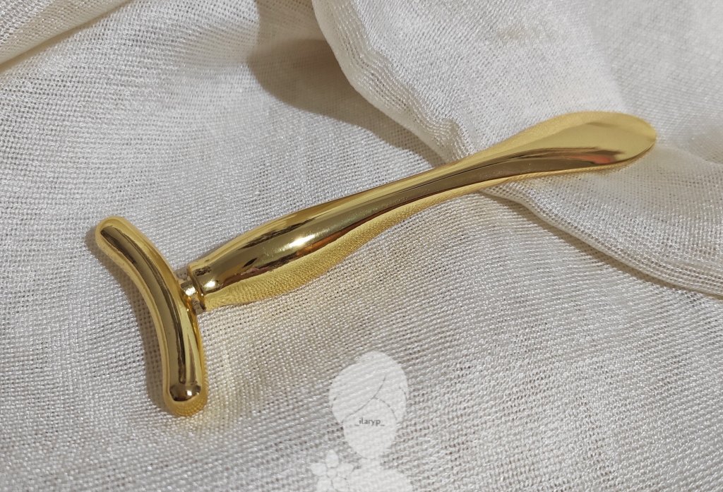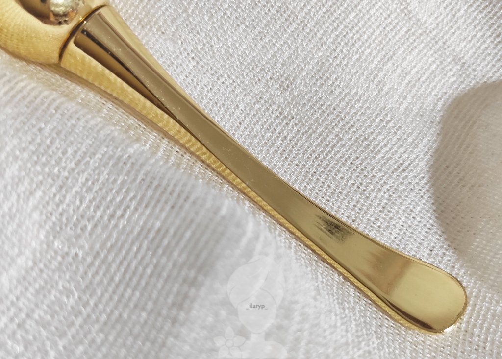 Questo è quello che fin dalla sua uscita mi ha incantato( infatti l’ho acquistato subito). Mi ha incuriosito subito perché già effettuavo dei massaggi drenanti al contorno occhi con le mani e ho pensato che con un tool sarebbe sicuramente stato migliore il risultato e cosi infatti è stato! Anche questo è in metallo anallergico, e si compone di una parte con spatola per prelevare il prodotto e una parte con due sfere( una grande e una piccola) che ruotano effettuando il massaggio. Qua troviamo sacchetto e foglietto se comprate il tool da solo, invece se acquistate il cofanetto con il contorno occhi no.