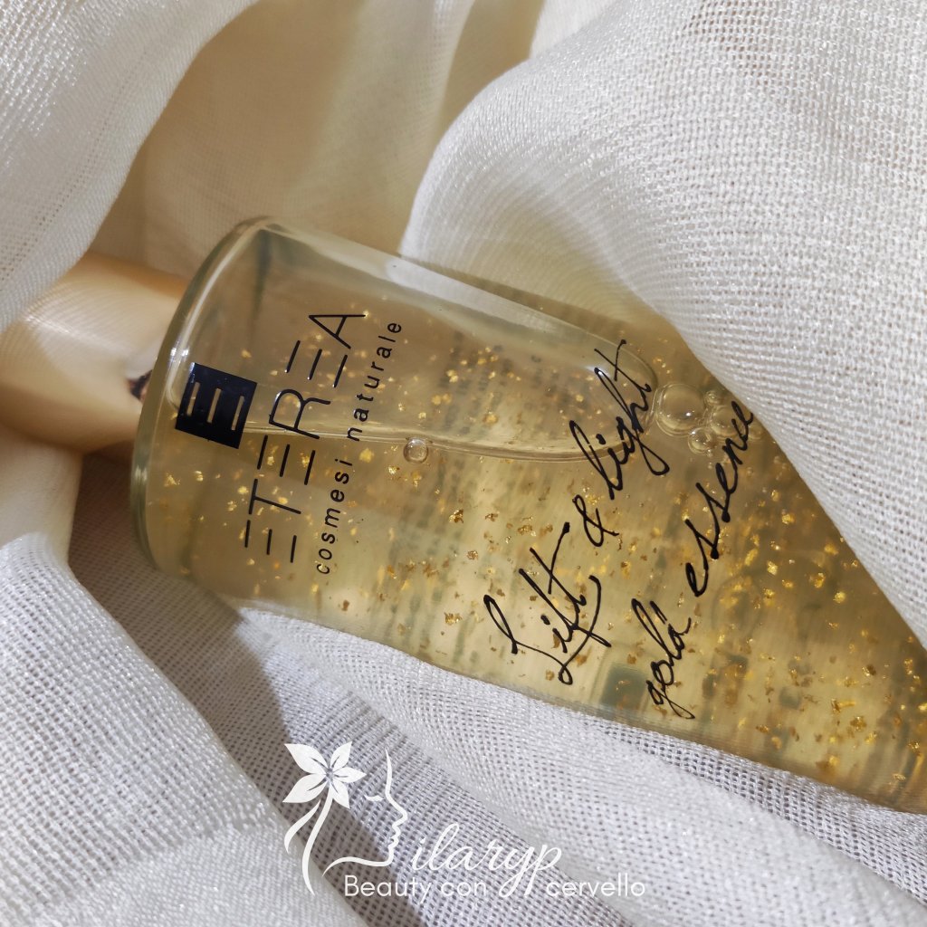 Partiamo dalla texture, acquosa e leggera; al suo interno troviamo foglie d’oro quindi abbiamo un liquido un po’ più denso del tonico trasparente con tante pagliuzze dorate super chic! Il profumo è leggero e floreale, io ci sento molto il miele e lo amo. L’applicazione è facile, questo step come abbiamo già detto si inserisce tra tonico e siero. Applicate qualche goccia di prodotto e picchiettate sul viso, mi raccomando siate delicati che non siete muratori che lanciano cemento o massaggiatori Thai. Con leggeri movimenti fate assorbire il prodotto, attendete qualche minuto e passate allo step sucessivo.
