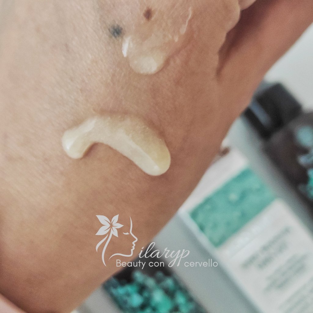 Il siero è abbastanza liquido,di un colore beige chiaro. Molto leggero, asciuga il sebo in eccesso e impedisce che la pelle si lucidi per svariate ore. L’odore anche qua è erboso ma non è persistente. Io a volte sento la necessità di mettere dopo qualcosa perché asciuga davvero tantissimo. Adesso con il caldo è davvero perfetto per non avere l’effetto unto sul viso! Io ne uso tre pump per tutto il viso e collo( perché ricordatevi che i prodotti si mettono anche su viso collo e décolleté).