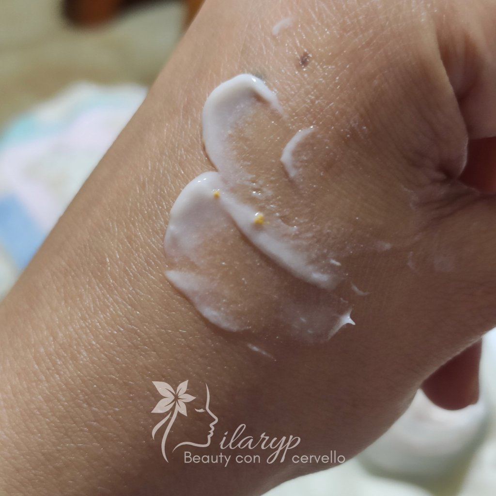 Partiamo dalla texture, molto cremosa e confortevole. Al suo interno troviamo le perle di Q10, che necessitano di un massaggio per essere frantumate quindi è molto importante farlo!