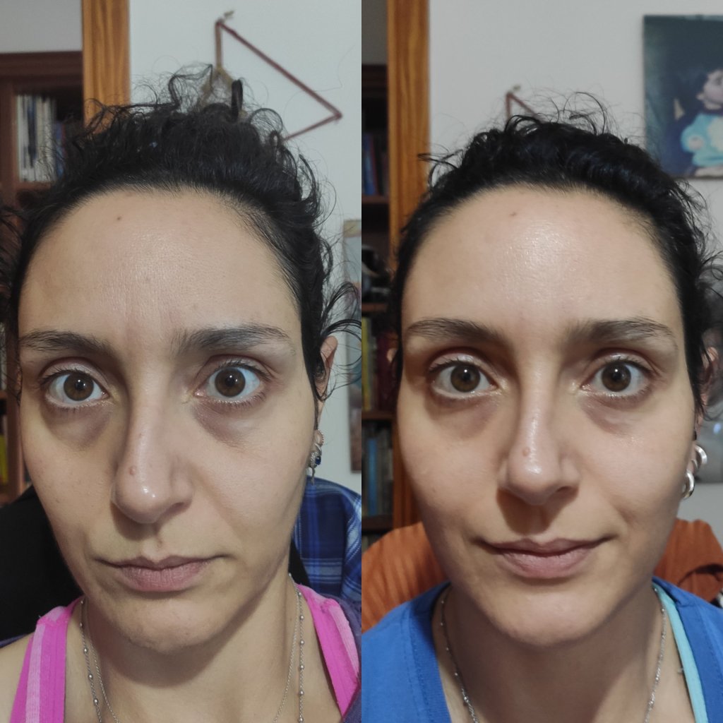 Per essere obiettiva non ho inserito nessun prodotto rimpolpante o tonificante nelle mie routine, così ho avuto la prova che solo ed esclusivamente l’allenamento ha giovato già in un mese alla mia pelle e alle mie rughe. La pelle appare più luminosa, purificata e soprattutto tonica con meno segni. Ti metto le foto dei progressi in un mese perché parlano da sole.