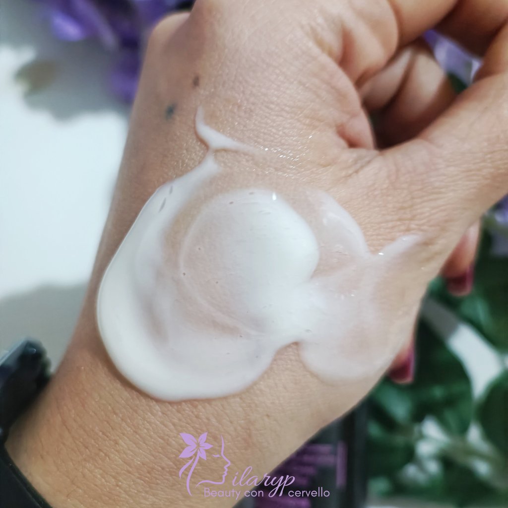 Ho ricevuto il prodotto dall’azienda per il suo lancio e da allora l’ho usato con costanza a ogni lavaggio. La sua texture è leggera, un mix tra gel e crema che non si avverte tanto sul capello. Io in particolare ho un capello molto fine e usandone una nocciolina circa non noto pesantezza. Il profumo è leggero a me sembra floreale ma non persiste. I capelli dopo l’applicazione e asciugatura sono meno crespi e piu luminosi ed elastici.