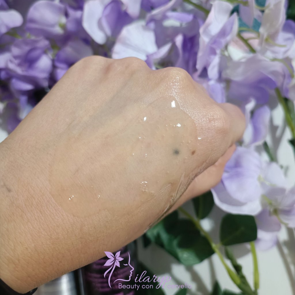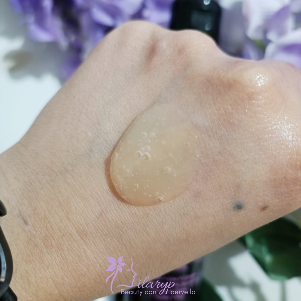 Non ha una particolare profumazione, la sua texture è un gel ma quasi liquido di colore marroncino.